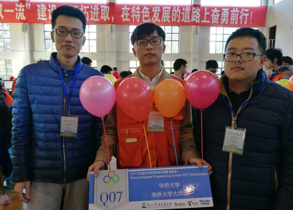 第三届中国大学生程序设计竞赛10月29日举行,我校计算机科学与技术学院学生张坤容、谢楠、数学科学学院学生唐德组成的HQU_Master队(指导教师:罗伟)获得铜奖。