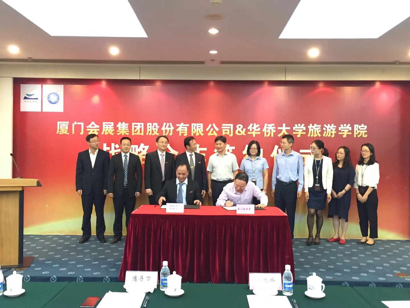 11月3日下午,华侨大学旅游学院与厦门会展集团股份有限公司战略合作签约仪式在厦门国际会议展览中心303会议室举行。华侨大学旅游学院院长黄远水教授、党委书记吴春安研究员、副院长陈金华副教授、谢朝武教授、会展系主任张慧副教授、2017级会展经济与管理班主任吴贵华老师,厦门会展集团股份有限公司潘子万董事长、魏观宇总经理、吴晓昱副总经理、陈永裕副总经理、人力资源部经理包雯霞等共同见证了签约仪式。
