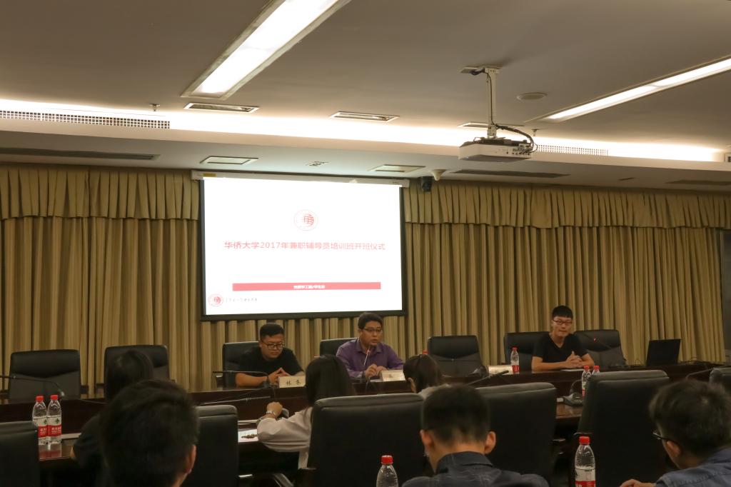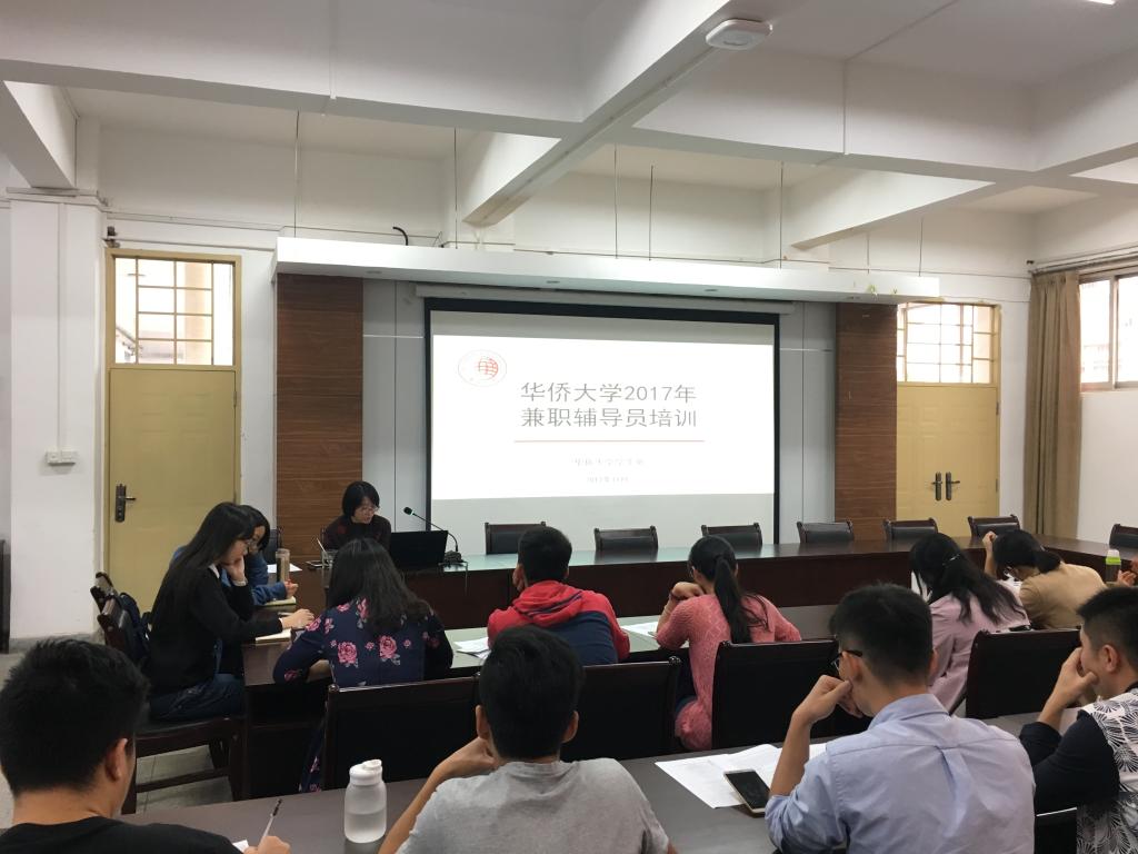 为加强学生日常管理工作,提升兼职辅导员对工作的认识,进一步提高兼职辅导员综合素质,由学生处主办的2017年兼职辅导员工作培训班于11月18日在我校泉州校区金川学生活动中心209会议室和厦门校区行政研发大楼403会议室同时开班,来自学生处、校团委、创新创业学院和各学院共计60余名兼职辅导员参加此次培训。