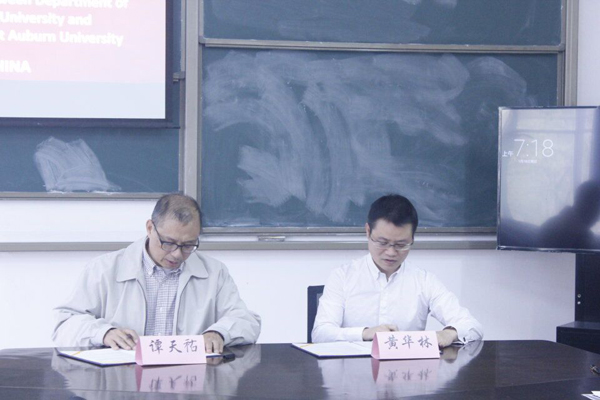 11月23日下午,我校数学科学学院与美国奥本大学数学系合作协议签署仪式在学院307会议室举行。我校数学科学学院院长黄华林、奥本大学数学系主任谭天祐分别代表双方签字。