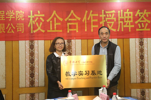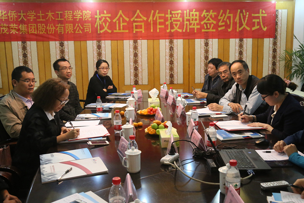 我校土木工程学院与茂荣集团股份有限公司共建教学实习基地签约授牌仪式近日在茂荣集团总部举行,土木工程学院副院长秦旋和茂荣集团总经理王火花分别代表校企双方在共建协议书上签字,现场并颁授“华侨大学土木工程学院教学实习基地”牌匾。