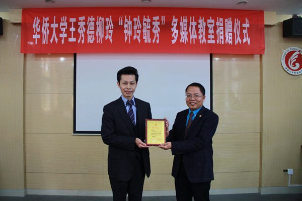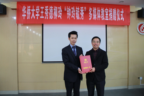 今年12月12日,王秀德校友捐资100万人民币设立“华侨大学王秀德柳玲奖学金”用于学校人才培养工作,其好友陈熹感念其事业有成后仍情系华园,慷慨捐资10万元人民币,用于外国语学院多媒体建设。