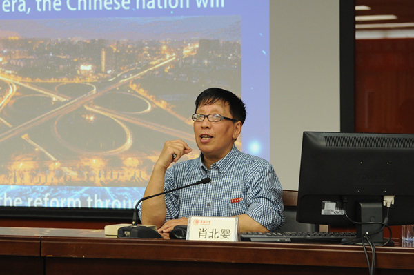 10月23日下午,由党委宣传部主办的纪念改革开放40周年系列讲座在郑年锦图书馆二楼报告厅举行第四讲,马克思主义学院副教授肖北婴应邀作《改革开放40年与中国形象——深刻领会习近平关于改革开放的重要论述》的主题报告。