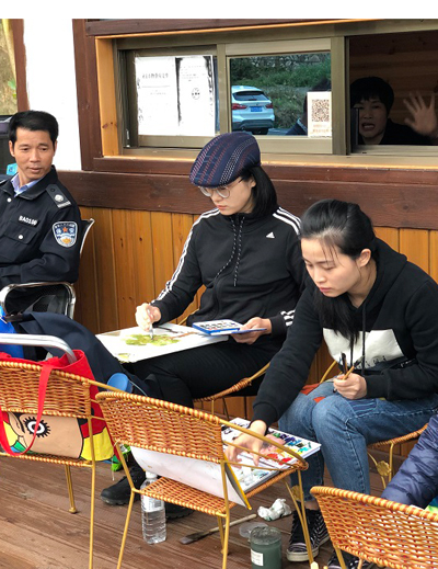美术学院教师先后参观考察了全国重点文物保护单位、国内保存最完好的大型木构建筑——安贞堡,以及乡风民俗馆、文昌阁、长兴堂、江王宗祠等,并在安贞堡、洋尾村、南山村、大龙逢村、黄历村等地进行采风写生。他们还将数幅充满诗意的精美画作送给当地,以作留念。