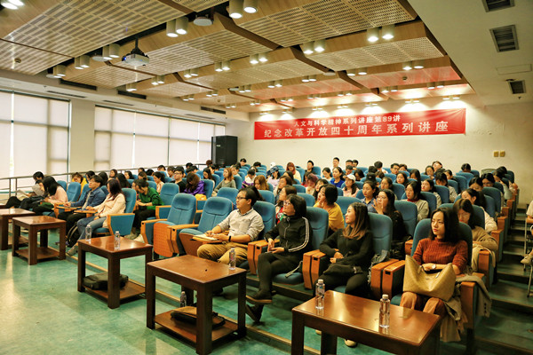 11月27日下午,由党委宣传部主办的纪念改革开放40周年系列讲座在王源兴国际会议中心103室举行第五讲,音乐舞蹈学院党委书记、常务副院长马海生教授应邀作《改革开放40年——中国歌曲创作的新发展》的主题报告。