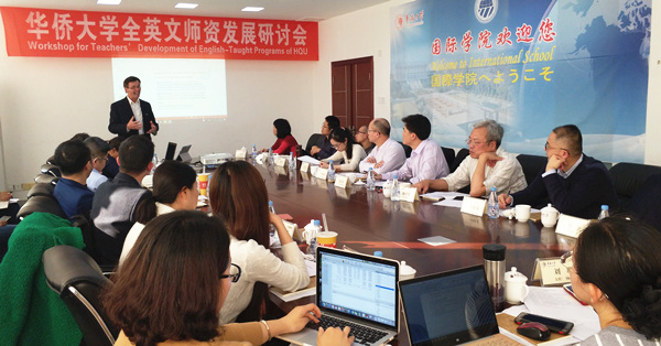 12月11日下午,华侨大学全英文师资发展研讨会在杨思椿科学馆五楼会议室举办。国际学院院长李勇泉、高顿教育高校事业部总监杜敏、高顿教育高校事业部华南区总监林华壤、国际学院副院长陈慰星、工商管理学院副院长兼国际学院副院长曾繁英、高顿研究院CFA中心主任袁杰、国际学院国际商务系副主任李晓龙、国际金融系副主任苏小慧等出席。来自高顿研究院的高级讲师王江虹、赵京海、田寻等,以及全校的全英文授课教师王娜(工商管理学院)、詹君恒(经济与金融学院)、林美珍(旅游学院)等参会。我校还特别邀请美国乔治城大学商学院教授Mark M. Michalski出席会议并发表主旨演讲。