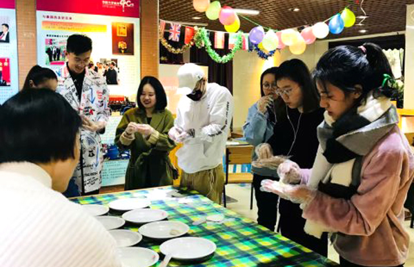 外教与学生们一起包水饺