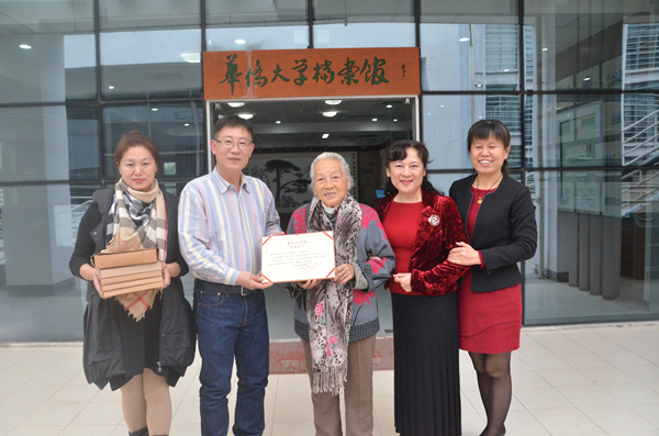 校档案馆馆长卫红(左二)向庄玉树副教授家属颁授收藏证书