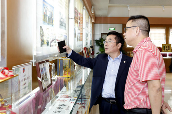 吴棉国(右一)参观华文学院校史馆