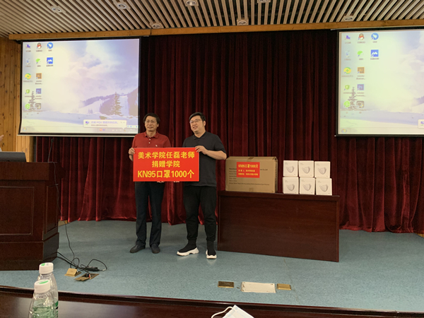 6月2日下午,美术学院任磊老师向学院捐赠1000只KN95口罩,用于发放给6月15日即将返校的该院2020届毕业生,助力学院疫情防控工作。