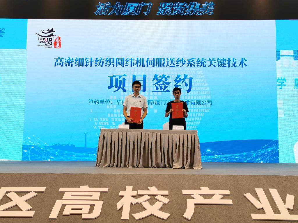 对接会上,我校信息学院与庸博(厦门)电气技术有限公司签署“高密细针纺织圆纬机伺服送纱系统关键技术”项目合作协议,信息学院郭新华教授就电气工程系科研团队及项目成果进行重点推介,并与参会企业对接产学研项目合作。