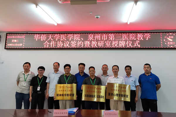 7月1日上午,我校医学院与泉州市第三医院签署教学合作协议,并为“‘精神病学’教研室”“‘医学心理学’教研室”“《早期接触临床》实践基地”进行授牌。