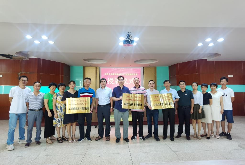 8月13日上午,我校医学院与泉州市皮肤病防治院签署教学合作协议,并为“‘皮肤性病学’教研室”“‘皮肤性病学’实践基地”“《早期接触临床》实践基地”授牌。