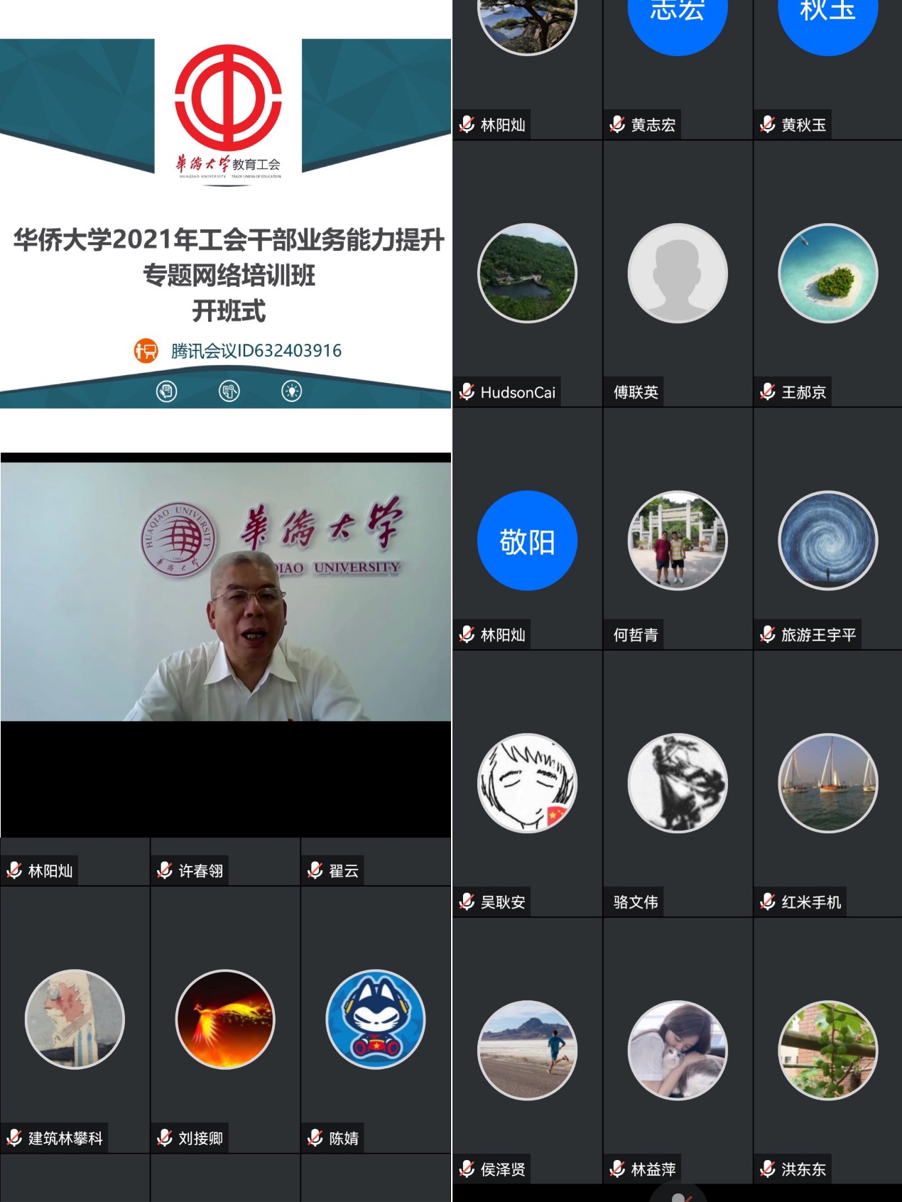 7月2日上午,华侨大学2021年工会干部业务能力提升专题网络培训班线上举行开班式。校党委副书记、教育工会主席刘斌主持会议并讲话。