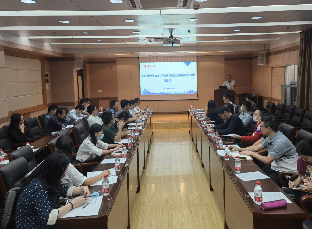 近日,华侨大学知识产权申请资助交流座谈会在机电信息实验大楼A207举行。科学技术研究处处长李钟慎、相关学院(研究院)教师代表等40余人参会。