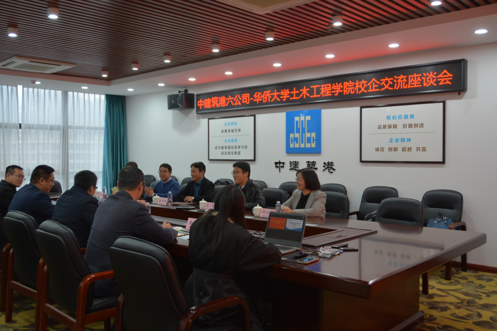 1月21日,刘阳一行5人走访中建海峡建设发展有限公司和中建筑港集团。在中建海峡建设发展有限公司,我校一行实地参观了企业文化馆,详细了解了企业的发展历史和主营业务。座谈会上,福建省结构工程与防灾重点实验室主任、福建省结构体系创新与智慧建造2011协同创新中心主任、我校土木工程一级学科带头人郭子雄教授介绍了校企双方共建的福建省2011协同创新中心的建设情况,以及福建省高校产学研项目研究进展。他表示,双方应更深入融合,结合企业、行业需求,进一步推进产学研合作。随后,我校一行与企业负责人及业务骨干进行了深入交流,明确了拟进一步合作研发的方向。
