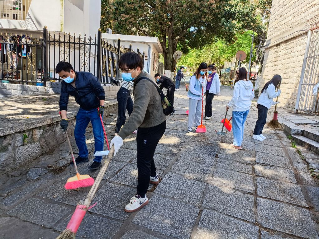 4月5日下午,经济与金融学院举行“沉默的力量 在清明学会感恩”活动,33名学院入党积极分子、党员与境外生对部分公共区域进行卫生清扫,缓解泉州校区封闭管理期间的卫生清理压力,积极响应并落实爱国卫生活动。
