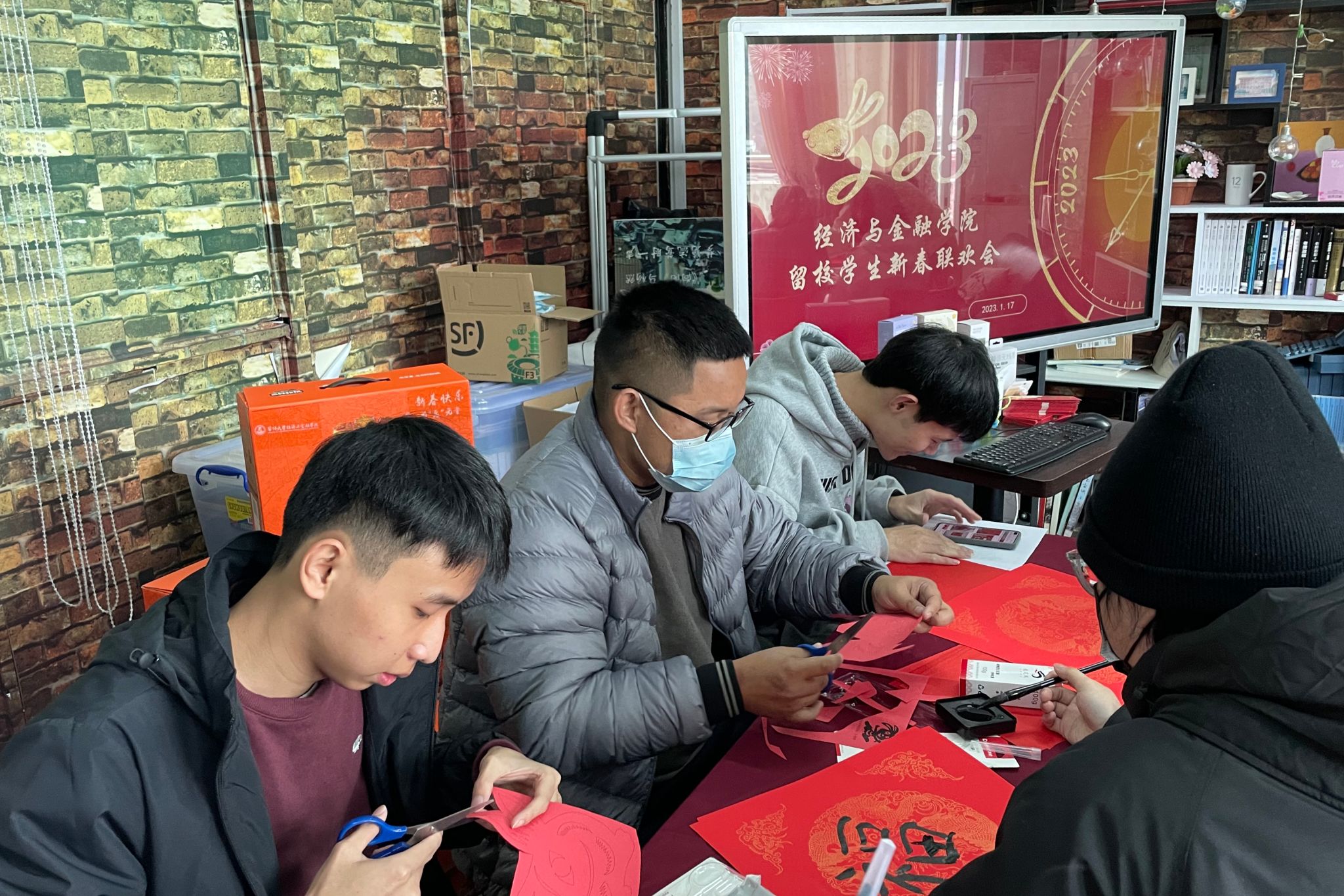 1月17日,经济与金融学院举办留校学生新春联欢会,学院党委相关负责人和老师与21名学院留校同学亲切交流,一同写春联、剪窗花、做灯笼,度过了一段温馨欢乐的时光。
