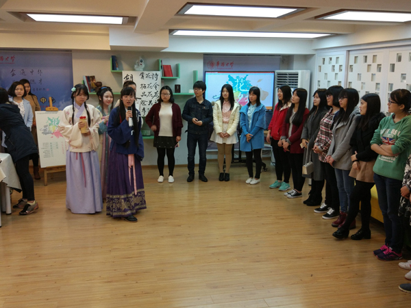 此次活动由书画协会、蒹葭汉服社、茶苑协会、太极拳协会、咏春拳协会等学生传统文化社团举办。社团学生表示,结合传统节日举办这次传统文化体验活动,目的在于让广大境内外学生亲身感受中华文明的魅力,使传统的国学经典和文明礼俗得到传承和发扬。