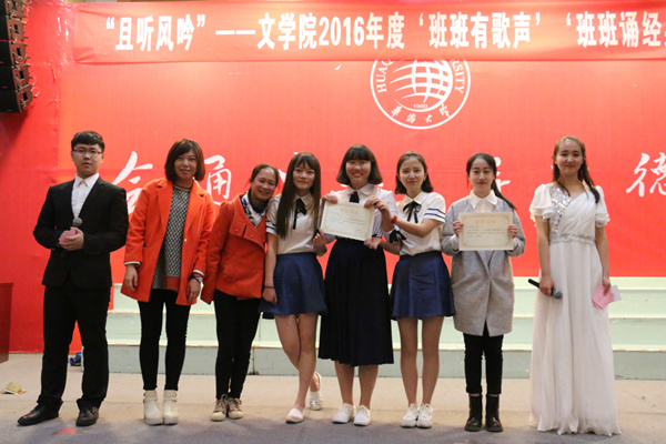 3月26日,文学院2016年度“班班有歌声”“班班诵经典”歌会在明德堂举行。文学院党委副书记陈英文、团委书记肖景川、辅导员郭逢成及14、15级各班班主任出席本次大会。本次歌会也吸引了14、15级各班同学到场观看。