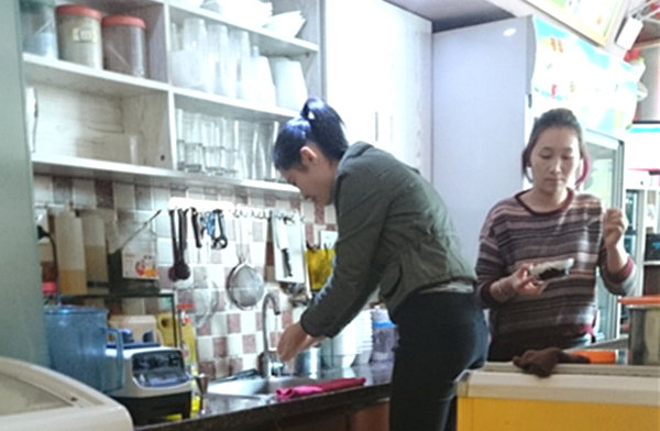 队员通过洗碗赚钱