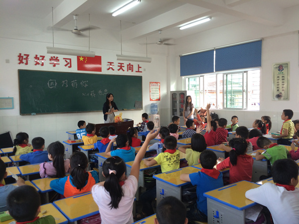 爱无疆支教团成员与小学生积极互动