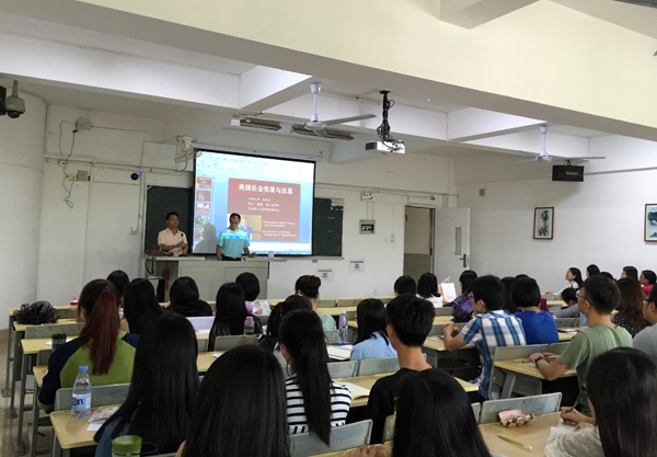 林怀艺结合自身在美国杜克大学访学经历,从美国自然社会和民众、美式教育、美国的医疗与养老、美国的社会治理结构等八个方面分析美国社会实录。在介绍美国的自然、社会以及民众问题时,林怀艺通过美国民众家庭自觉悬挂美国国旗阐释了美国爱国主义和个人主义相结合的良好传统。在讲到美国医疗和养老问题,林怀艺直指美国养老医疗背后个人承担的高额费用。在谈到美国“可持续发展”问题时,结合中国可持续发展观念以及十八届五中全会所提的五个发展理念阐明中国未来发展的可持续性。谈到美国的种族歧视问题时,林怀艺分析了当前美国种族构成及所占比例,同时结合自己学术研究分析了种族歧视的原因。最后,林怀艺对美国梦和中国梦的异同进行分析,阐明中国梦的特质和目标,鼓舞在场所有预备党员,要牢记使命,弘扬爱国精神,增强社会责任意识,从自身做起,共圆中国梦。