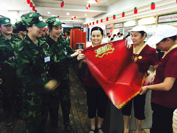 为了表达对学校后勤保障的谢意和敬意,17日晚间,在音乐舞蹈学院党委书记陈雪琴、后勤处副处长刘志雄、后勤处综合科副科长赖天能、计算机学院学工办宋益国、音乐舞蹈学院团委老师张厚方、杨景惠等见证下,同学们向凤林餐厅员工送上一封感谢信,感恩凤林餐厅全体员工兢兢业业的付出和充满爱心的关怀,感谢在偌大的校园里有这样一群基层工作者们默默为学生服务,感谢在这样的雨夜为军训团三连的全体同学“雪中送炭”。