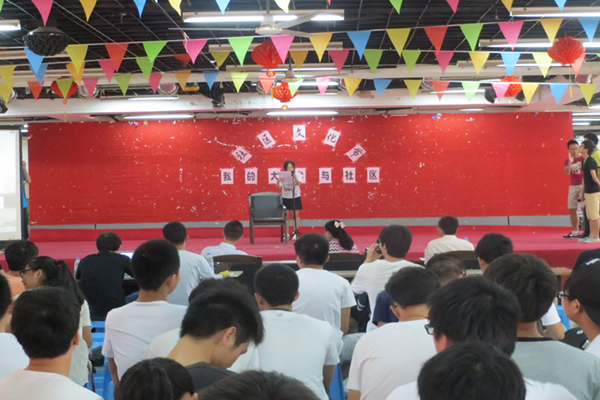 各队代表上台演讲,阐述自己对“我的大学与社区”这一主题的理解,第九组代表孙娟《你想要什么样的大学生活完全由你自己决定》中说道,“虽然我的普通话并不标准,但是我依然敢于站在这里演讲”引来观众的赞同和掌声。