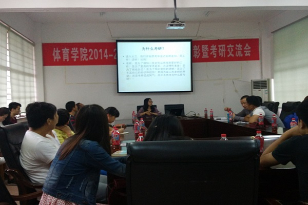 5月26日,体育学院在学院会议室召开2015年考研表彰暨经验交流会,副院长王振、2011级班主任仝二宝、2013级班主任邱腾飞出席会议,会议特邀胡国鹏、刘鎏、张颖慧三位博士与今年考研成功的金葵等9名同学参加交流会,会议由杨江龙主持,学院2012、2013、2014三个年级的部分同学参加了交流会。
