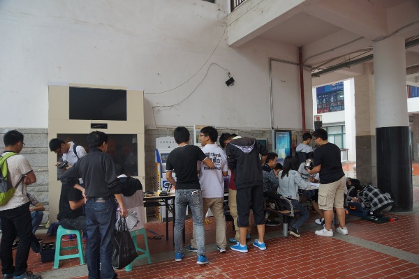 活动前一周开始校内宣传活动,21、22日两天于校内设有专为学校教师的收集站,学生于23日在学校中庭设有全天候开放的服务点。活动现场,师生拿着受损家电到前台工作人员处进行详细的信息登记,便由维修人员进行故障分析。维修分为对简单问题的现场维修,和较复杂的实验室维修两种。维修人员经过检查、修复后,由前台工作人员电话联系家电主人,告知前来取家电及进行耐心的讲解。在有序的工作中,送来的家电陆续完成修复,据统计本次家电共收到80余件,维修率达80%以上。