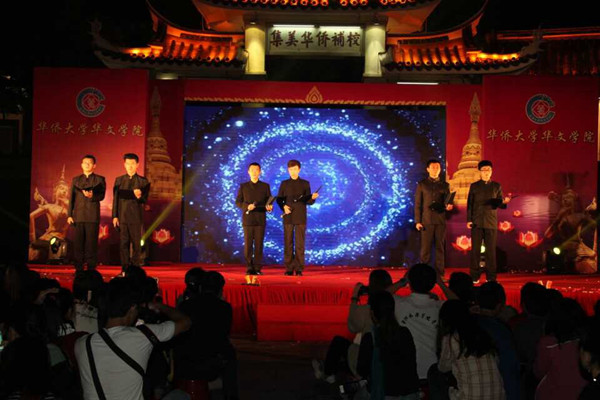 本场晚会涵盖了以“水灯节”为主题的水灯小姐大赛、配乐诗朗诵和水灯设计比赛等系列活动。展现泰国水灯节历史的舞蹈拉开整场晚会的帷幕。泰王国驻厦门市领事馆副领事孟坤、华文学院党委副书记王坚分别致辞,祝贺水灯节晚会顺利举办,期盼中泰友谊地久天长,华文学院教育事业蒸蒸日上。