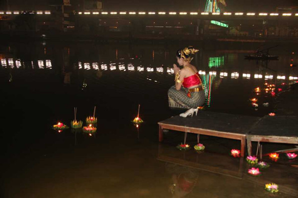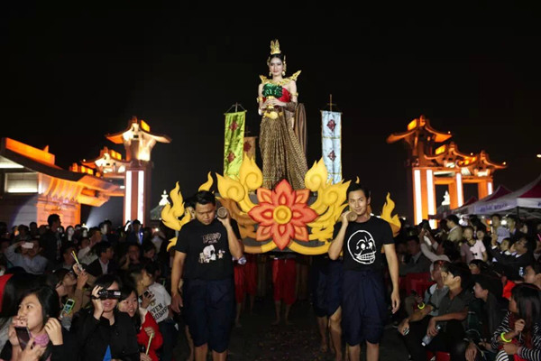 晚会最后,水灯小姐们带领现场观众来到龙舟池畔,燃放水灯。小小的水灯承载着对家人的思念与祝福飘向远方,祈祷着来年的幸福平安,也祈盼中泰两国友谊万古长青。
