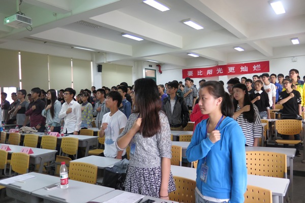 随后,优秀学生代表陈奋裕、杨洪财、董雨升三人依次分别就科创、学习、创业等方面向阳光成长计划成员传授经验,答疑解惑,他们鼓励同学努力学习,积极参加科创,不给自己的大学留下遗憾。接着,14级阳光成长计划成员代表黄天进行励志发言,表达了他对大学的美好憧憬和获得资助的感恩之情。随后,张晓婷对报告会进行了总结,并说明了学院阳光成长计划的未来培养计划。最终,在主持人带领下,所有与会人员齐唱校歌并宣誓,此次励志报告会结束。