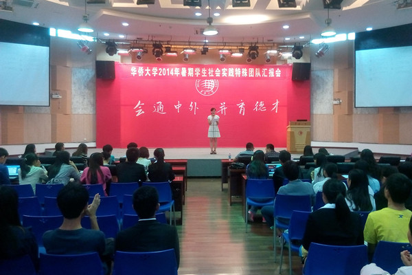 10月19日上午,华侨大学2014年暑期学生社会实践特殊团队汇报会在洪祖杭四楼明德堂举行。校团委社会实践指导中心主任张伟、组织部部长谌祉樾、兼职辅导员蒙冬英、社会实践指导中心前副主任黄翊君等出席本次汇报会。