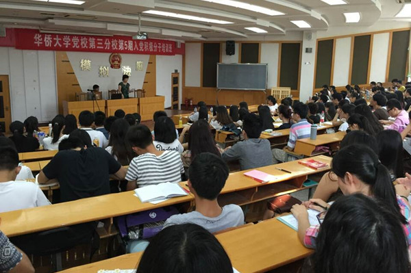 10月21日下午,华侨大学学生党校第三分校第五期入党积极分子培训班在洪祖杭楼模拟法庭拉开帷幕。本次培训班由继续教育学院主办,第三党校常务校长工学院党委书记郑黎鸰,外国语学院党委副书记林庆祥,外国语学院团委老师苏景荣、法学院团委老师乔彦军,继续教育学院学工处主任陈瑞琼、团委副书记魏佳琦、团委老师林苏燕、赖桂秋等出席开班仪式。