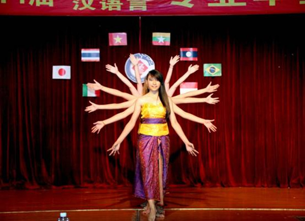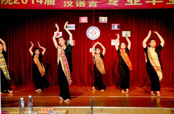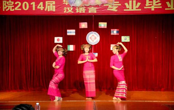 东南亚异国服装走秀表演拉开晚会演出的序幕,印度尼西亚舞蹈、泰国舞蹈、菲律宾舞蹈、越南扇子舞、缅甸舞蹈等充满异域风情的舞蹈轮番上演。此外他们还表演了话剧《茶馆》,并现场展示中国书法,精彩演出令在场观众赞叹不已。