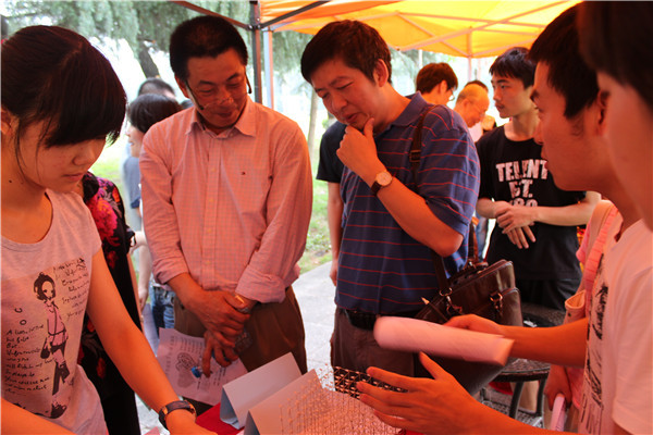5月27日下午,工学院举办第四届“光微”科技文化节作品展暨大众评审会。在工学院门口,各种新奇的小玩意儿引得同学纷纷驻足观看,展览的同学热情高涨,不遗余力地向欣赏作品的同学讲解作品特点和制作原理。当然,他们希望得到的还有大众评审的选票。