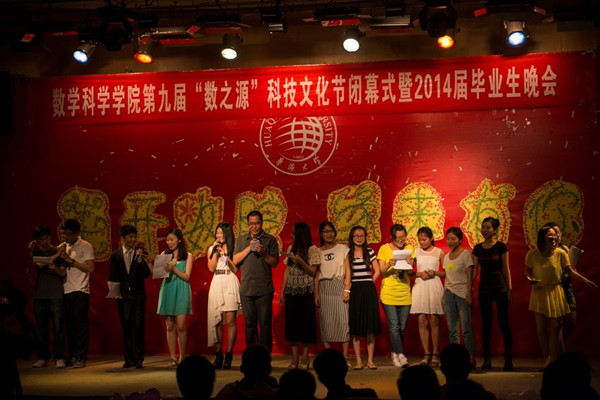 5月24日晚,第九届“数之源”科技文化节闭幕式暨“花开数院,缘来有你”2014届毕业生晚会在祖杭楼四楼明德堂举行。华侨大学副校长刘斌,数学学院院长张金顺,党委书记黄锦辉,副院长陈铭新、黄建新,办公室主任陶娟,辅导员黄永圳,校友企业厦门亿唐科技有限公司尤金丰、陈江荣、刘武功,班主任老师及各年级学生参加晚会。
