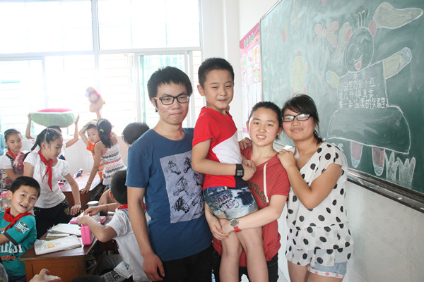 支教团成员与小朋友合影