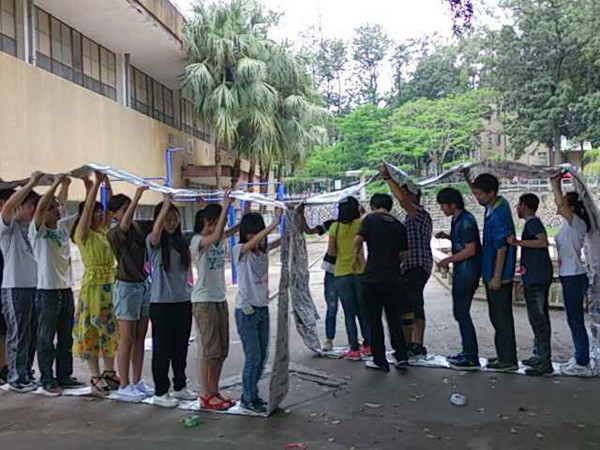 活动上,心理保健员随机分为3组,组员间互相认识,并为自己的团队命名取口号。活动共分为四个环节,依次为链接加速、心心相印、无敌风火轮、孤岛求生。主办方在活动最后还向参与人员发放精美礼品。