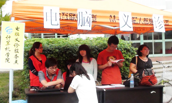 4月18日下午,由计算机学院团委学生会组织的“社区是我家,我来帮大家——‘电脑义诊’服务”活动正式拉开序幕。本次义诊共将持续十天,截至27日的每周二、五、日下午在计算机学院团委办公室、凤五、凤二、刺四及紫四楼下均设义诊点为广大师生解决电脑软件方面的问题。