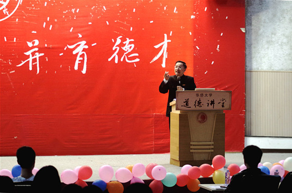 4月14日晚,文学院“尽孝道,明义理”道德讲堂活动在明德堂举行。本次活动是我校“道德讲堂”系列活动之一,由校文明办、文学院主办,文学院团委承办。