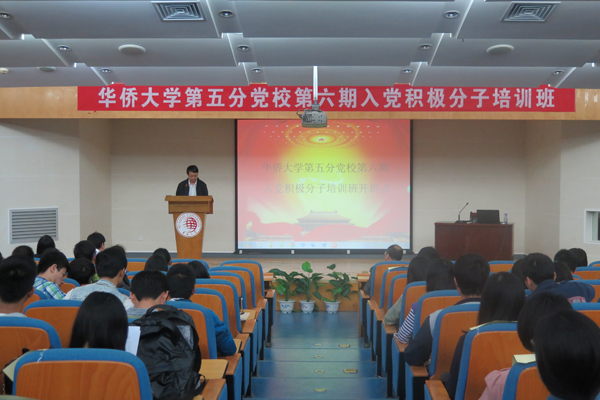 3月21日上午,华侨大学第五分党校第六期入党积极分子培训班正式开班,第五分党校校长、化工学院党委书记杨进,信息学院党委书记陈荣美,化工学院党委秘书蔡斌,音乐舞蹈学院党委秘书杨景惠等出席开班式。本期培训班由信息学院党委承办,来自信息学院、化工学院、哲社学院、音舞学院的151名入党积极分子参加了此次培训。开班仪式由信息学院党委秘书陈久国主持。
