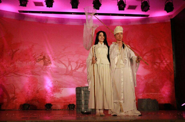 1月3日晚,由校学生艺术团花朝剧社排演的话剧《暗恋桃花源》在王源兴国际会议中心204厅上演。这是继去年6月《恋爱的犀牛》后花朝剧社举办的第二次话剧公演,整场表演持续两个半小时。