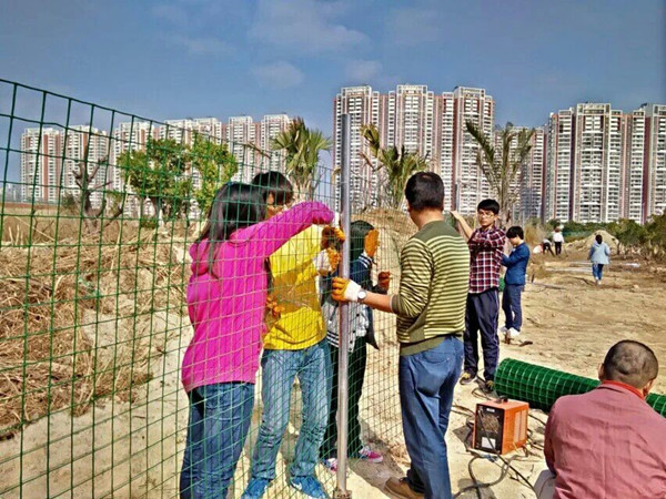 志愿者们在农场负责人的指导下开展了为农场建栅栏的志愿服务。大家分工合作,按照步骤完成了画线、固定铁桩以及剪铁丝等工作。志愿者们完成了农场负责人的要求,结束了此次志愿活动。