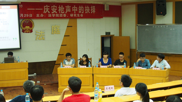 6月29日晚,由法学院研究生团总支、研究生会主办的第13期“纵横论案”于祖杭楼2-7教室举行,本次论案的主题是“庆安枪声中的抉择”。法学院副教授靳学仁、吴情树、王方玉应邀作点评嘉宾。校研究生会主席及其他兄弟院系研究生会主席及法学院师生近150人参加了本次活动。