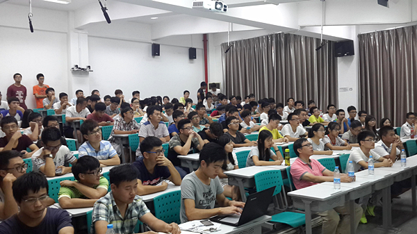 上一次竞赛中取得优异成绩的陈振兴作为竞赛的参与者,进行了精彩的作品展示,介绍了如何组队成员的经验,并且与现场的同学进行了交流互动,探讨了竞赛过程中遇到各种情况时候的处理方法。