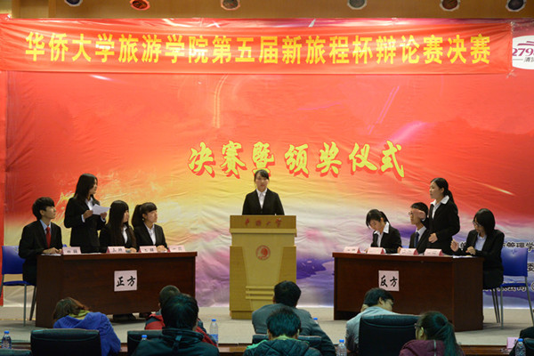 2014级旅游管理2班、2014级酒店管理厦航班、2014级人文地理与城乡规划班分别摘下旅游学院第五届新旅程杯辩论赛的冠军、亚军和季军。来自酒店管理厦航班的宋雅婷荣获“最佳辩手”,初赛和复赛中的李倩等8名同学荣获“优秀辩手”。
