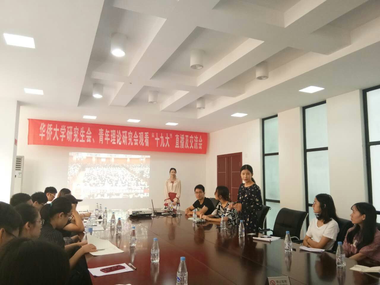 10月18日上午,华侨大学研究生会与青年理论研究会在两校区组织研究生代表观看“十九大”开幕会现场直播,并召开专题交流座谈会。